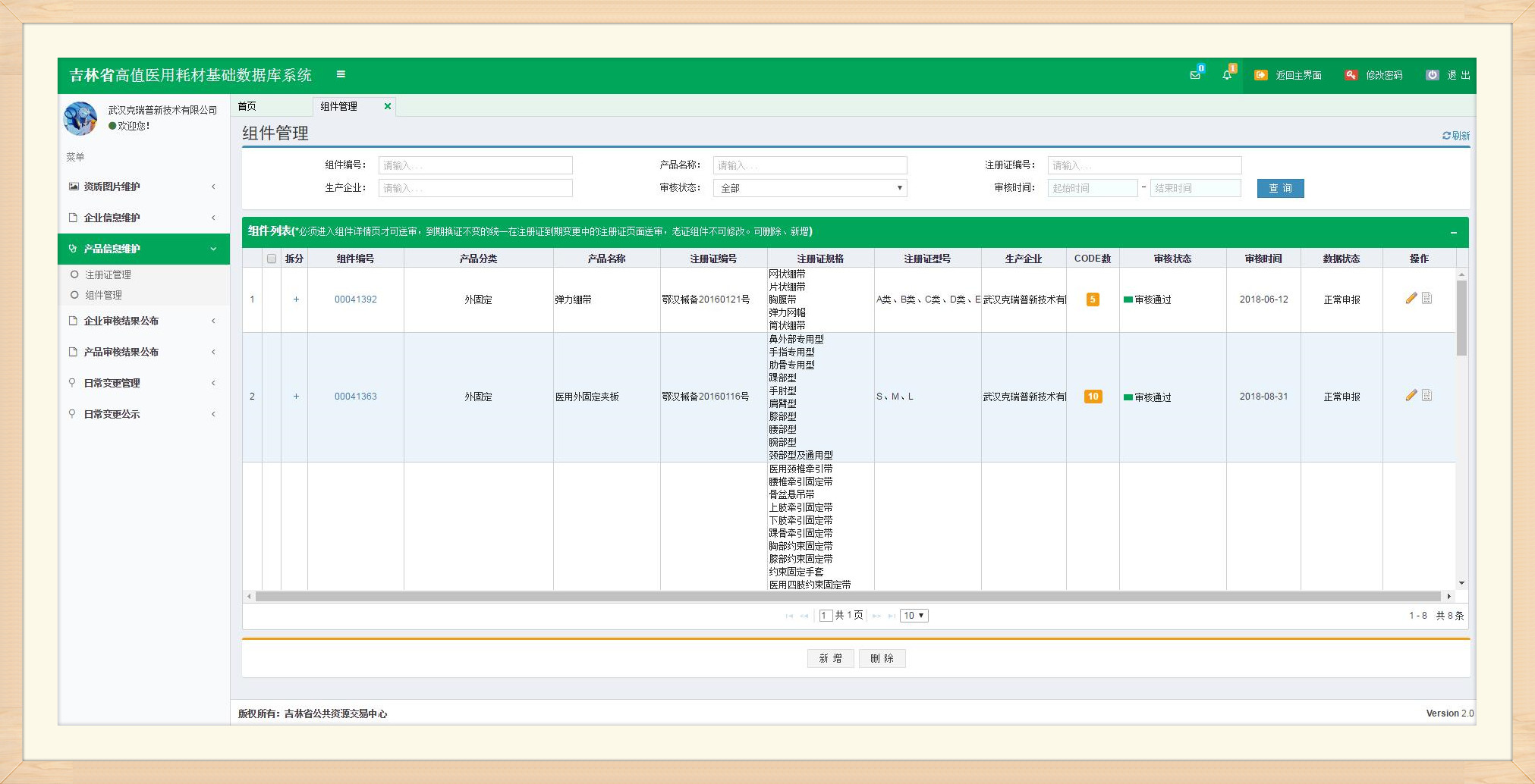 【吉林省高值醫(yī)用耗材基礎(chǔ)數(shù)據(jù)庫系統(tǒng)】武漢克瑞普新技術(shù)有限公司在吉林省高值醫(yī)用耗材申報系統(tǒng)中我們以成功審核通過我們的產(chǎn)品,本次通過的產(chǎn)品有東科圣康彈力繃帶、醫(yī)用外固定夾板、醫(yī)用外固定支具等產(chǎn)品,這類的產(chǎn)品適用于身體骨折后的外固定使用我們的產(chǎn)品已在各大醫(yī)院臨床使用。