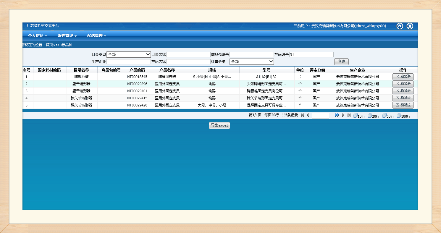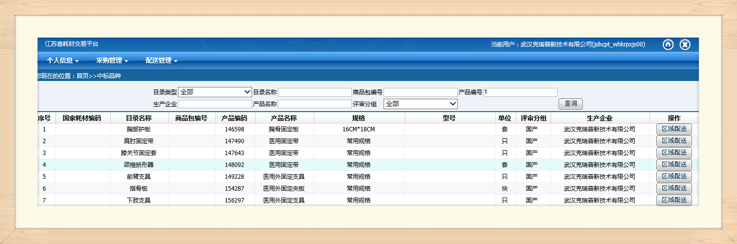 (江蘇省耗材交易平臺中標產品部分截圖)
