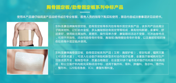 我們生產(chǎn)的胸骨固定板是密封包裝,輻照滅菌(可進(jìn)手術(shù)室),可進(jìn)入社會醫(yī)療保險和新型農(nóng)村合作醫(yī)療收費,全套醫(yī)療器械耗材生產(chǎn)注冊資質(zhì)齊全,規(guī)格型號多,質(zhì)量合格穩(wěn)定,在全國30多個省市政府醫(yī)療機(jī)構(gòu)集中采購項目,和公立醫(yī)療機(jī)構(gòu)陽光采購項目中標(biāo),適用于胸外科、骨科、腫瘤科、急診科、理療科、整形科、120現(xiàn)場急救、ICU、康復(fù)科等科室。