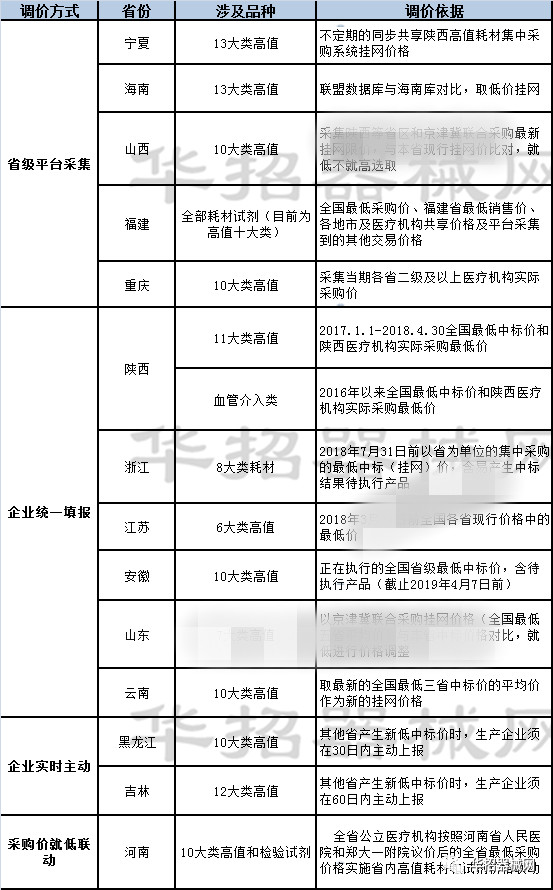 而自2013年國家發(fā)布86號(hào)文后,各地積極部署省內(nèi)集中采購工作,到2018年絕大多數(shù)省份新一輪高值醫(yī)用耗材集中采購相繼完成,價(jià)格聯(lián)動(dòng)、動(dòng)態(tài)調(diào)整成為各地招采工作的重頭戲,整個(gè)耗材集中采購環(huán)境呈現(xiàn)出“參考全國***價(jià)”、“一地更比一地低”的特點(diǎn)。政策吹風(fēng)適逢合適的集采時(shí)機(jī),多省在近兩年掀起大規(guī)模的調(diào)價(jià)風(fēng)云。