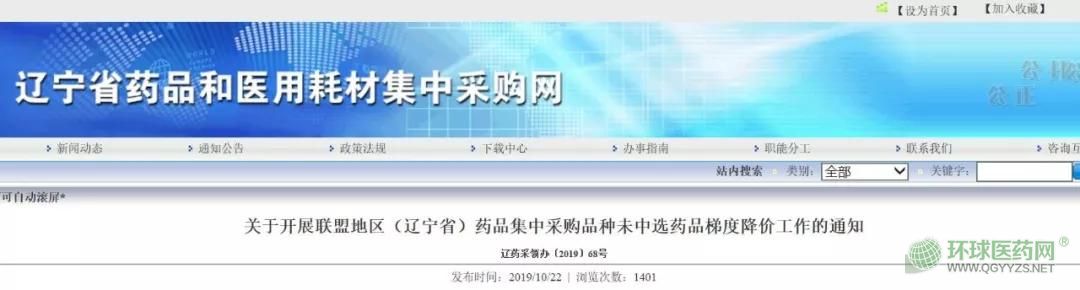 10月22日,遼寧省藥品和醫(yī)用耗材集中采購網(wǎng)發(fā)布《關(guān)于開展聯(lián)盟地區(qū)(遼寧?。┧幤芳胁少徠贩N未中選藥品梯度降價工作的通知》(簡稱《通知》),要求按照國家政策相關(guān)規(guī)定,就聯(lián)盟地區(qū)(遼寧省)藥品集中采購品種未中選藥品展開梯度降價工作。